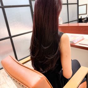ロングヘアの魅力を最大限に引き出す、深みピンクカラー。